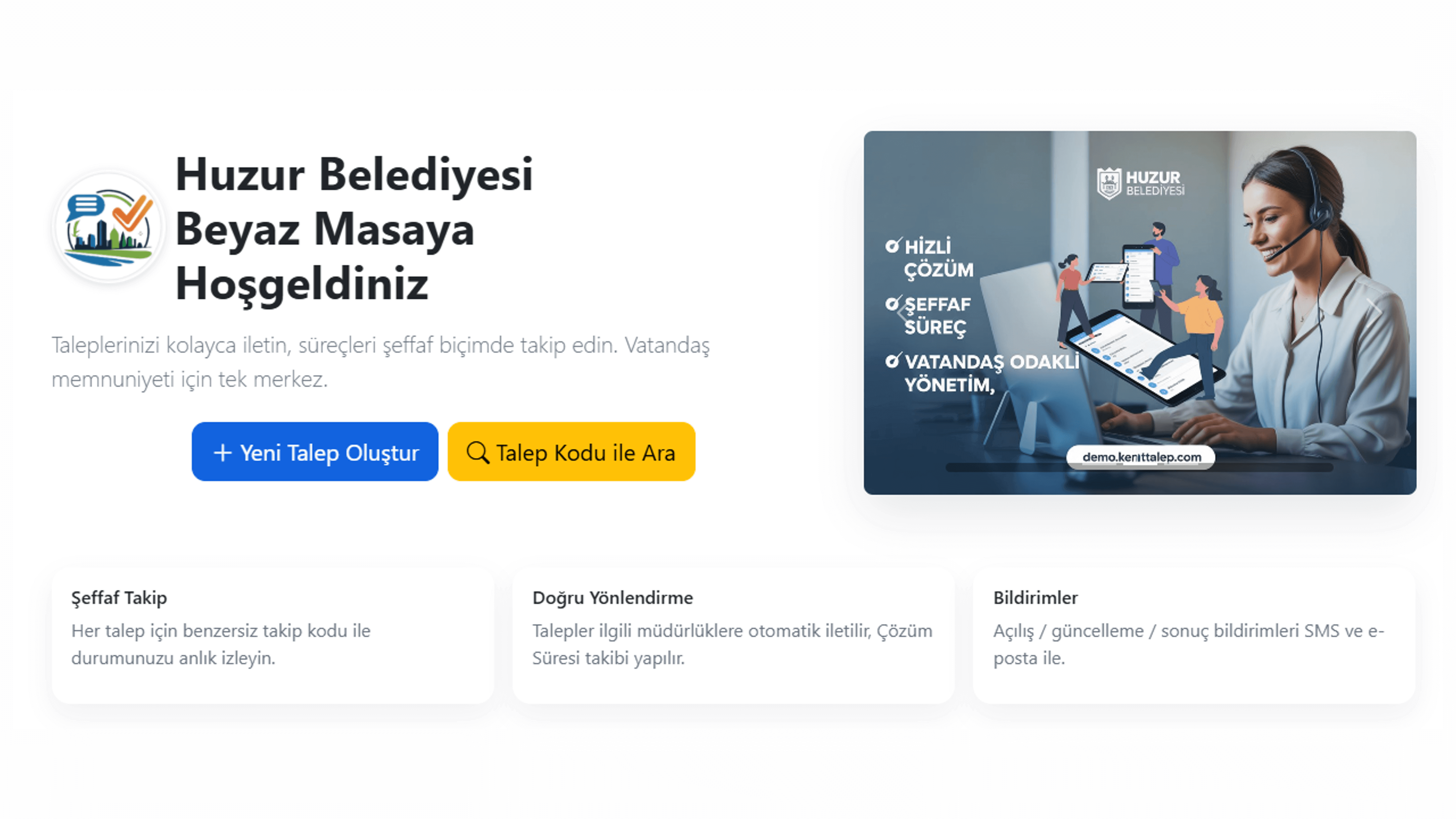KentTalep; vatandaş başvuru, şikâyet ve taleplerini kayıt altına alır, ilgili birimlere yönlendirir, SLA takibini ve raporlamayı otomatikleştirir.
