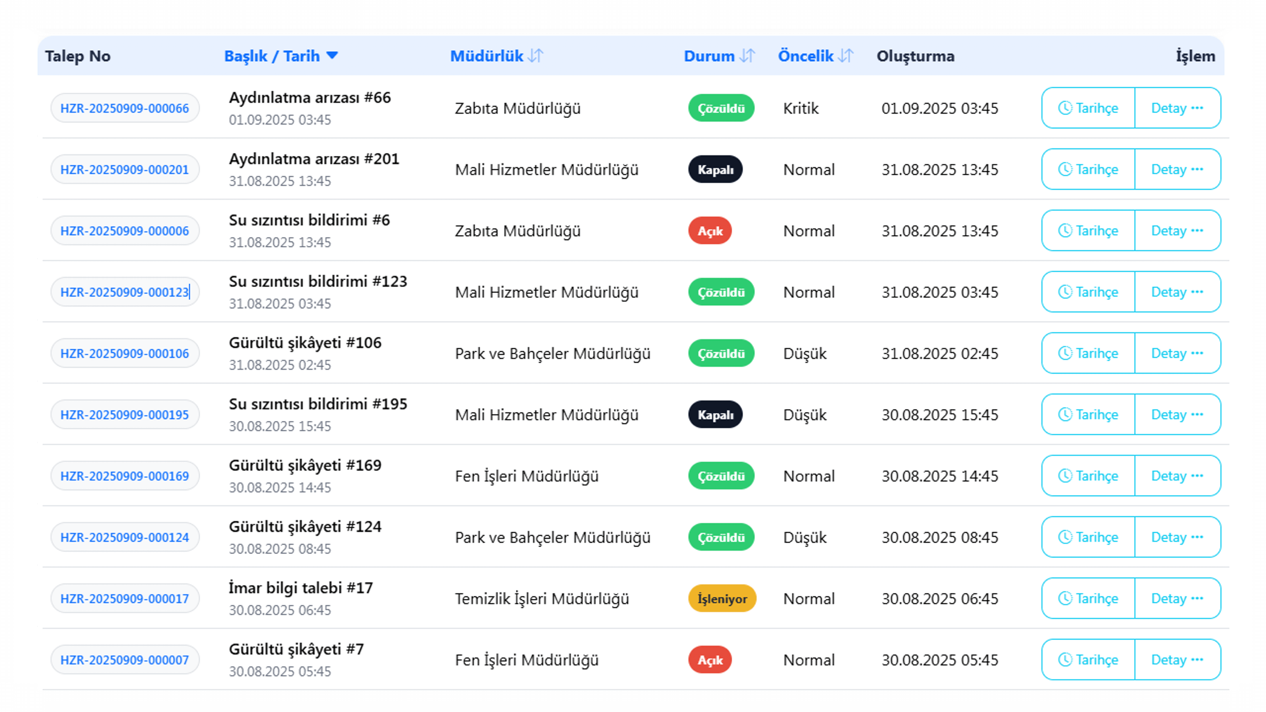 Talepler ilgili müdürlüklere otomatik iletilir, Çözüm Süresi takibi yapılır.